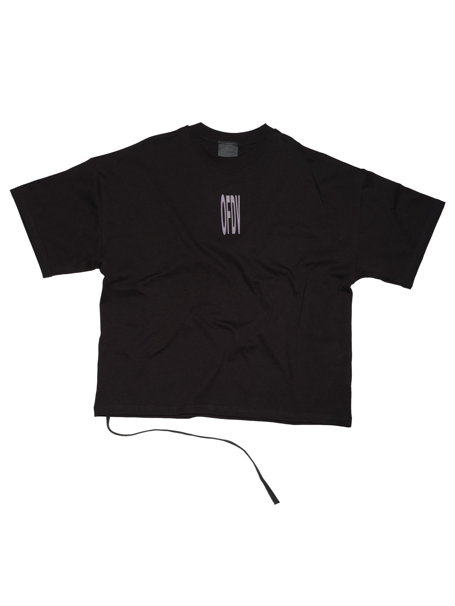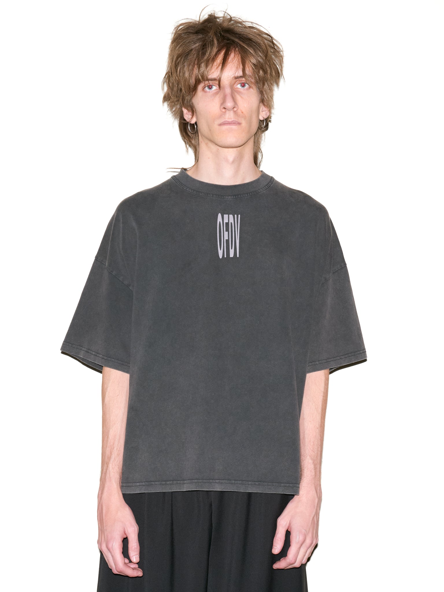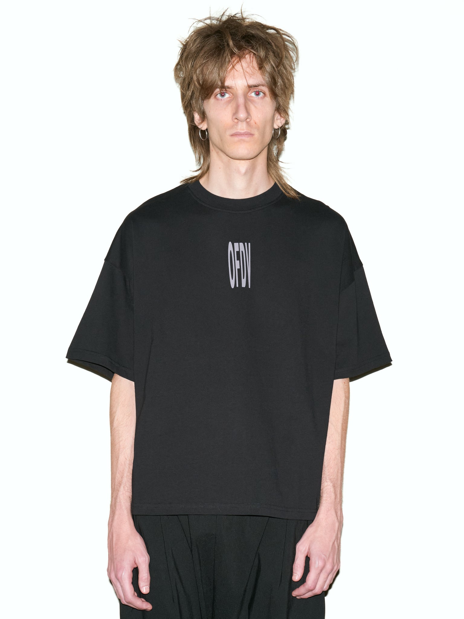 This black short-sleeved t-shirt features a loose and relaxed fit, with an oversized silhouette and a classic round neck.